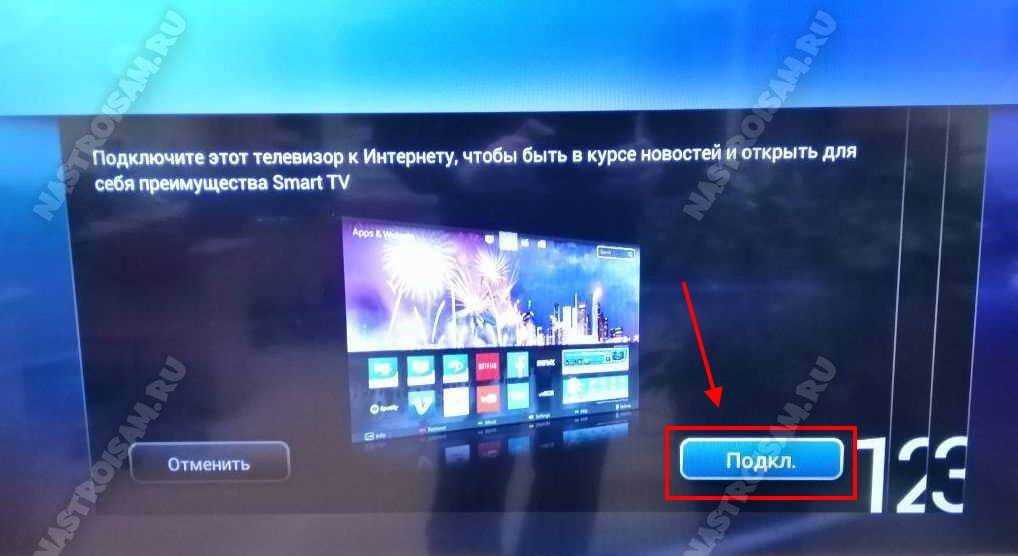 Я буду рассматривать в качестве примера подключение к сети телевизора Samsung Smart TV. Если у Вас телевизор LG, Phillips, Panasonic или иной — не огорчайтесь. Смысл действий везде одинаковый — просто действуйте по аналогии.