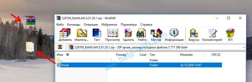 После этого нужно извлечь папку с драйвером из архива и установить его.