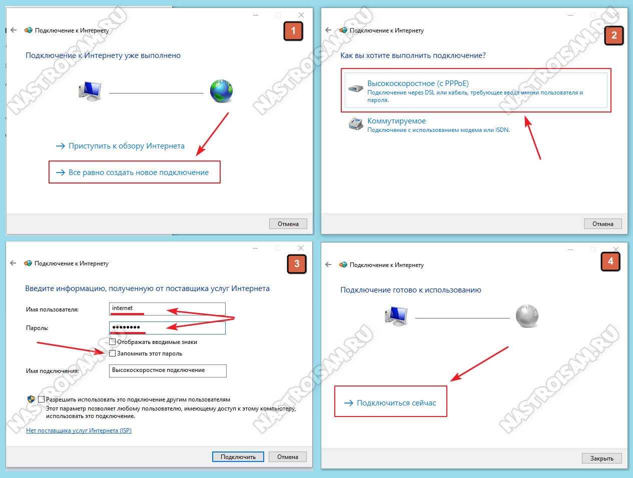 Внимание! Обязательно поставьте галочку «Запомнить этот пароль», иначе при подключении система будет постоянно требовать его ввести заново. После того, как подключение к Интернету без роутера будет создано, его надо будет запускать каждый раз, когда нужно выйти в глобальную паутину