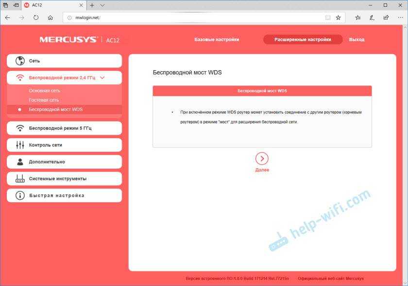 Беспроводной мост WDS. Mercusys AC12 можно настроить в режиме моста (WDS). В этом режиме мы можем подключить наш маршрутизатор к другой Wi-Fi сети. Например, для расширения покрытия беспроводной сети, или для использования AC12 в качестве Wi-Fi приемника.