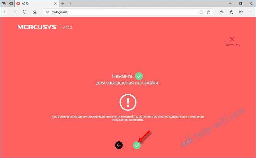 Вот и все. Если Mercusys AC12 раздает интернет и все работает, то настройка завершена.