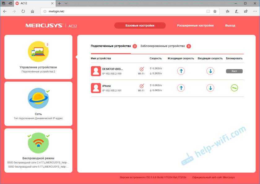 - Управление устройством (на скриншоте ниже). Где отображаются все подключенные устройства. Там их можно блокировать, или ограничивать для них скорость интернета.