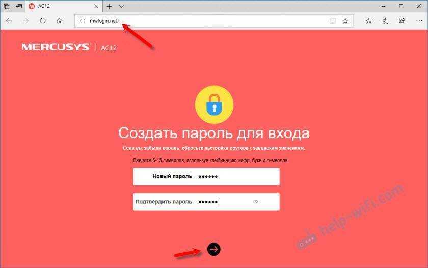 Маршрутизатор сразу предложит нам придумать и установить пароль, который в дальнейшем нужно будет вводить для входа в настройки. Указываем пароль два раза и стараемся не забыть его (лучше записать).