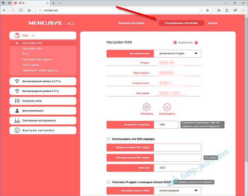 После того, как вы укажете правильный пароль – откроется страница с настройками. Если вы забыли пароль от роутера Mercusys, то необходимо сделать сброс настроек и выполнить повторную настройку (придумать и указать новый пароль). Не путайте этот пароль с паролем от Wi-Fi сети.