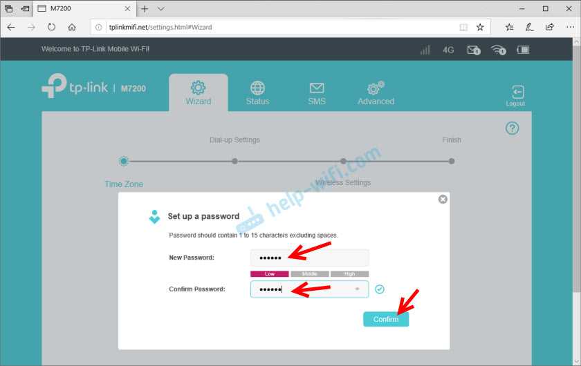 В веб-интерфейсе нам сразу предложат сменить заводской пароль admin на другой. Сделайте этого. Только запомните (а лучше запишите) пароль.