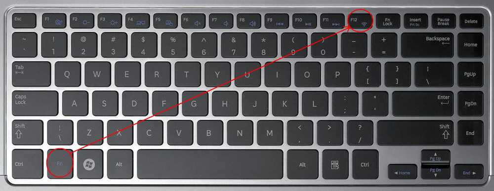 Для подключения модуля беспроводной сети необходимо определенное сочетание клавиш. Любое сочетание начинается с клавиши-модификатора Fn, к которой добавляется одна из функциональных — F1-F12. Если вы внимательно взглянете на функциональные клавиши, увидите значок беспроводной, вай-фай, сети.