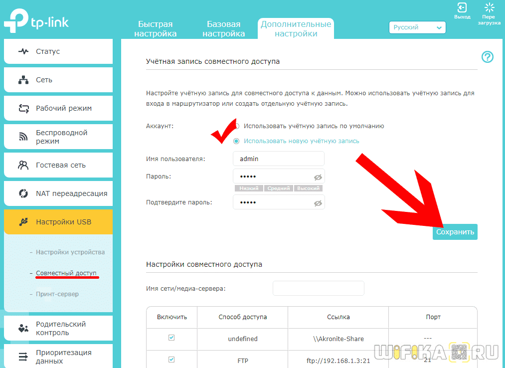 Также вы можете создать других пользователей и дать им пароли для доступа к расшаренной папке.