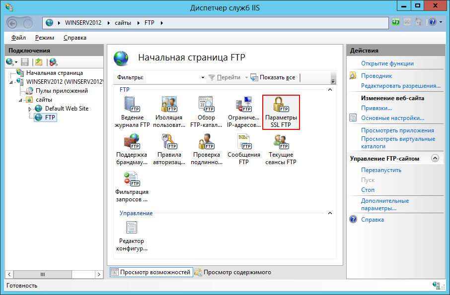 Чтобы настроить SFTP потребуется вернуться к начальной странице (кликнуть по FTP в левом подменю) и открыть параметры, как на скриншоте.