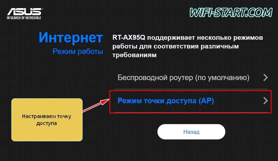 Настройка роутера ASUS в режиме точки доступа (AP)