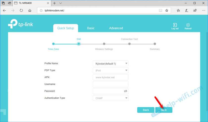 Вхід в web-інтерфейс TL-MR6400 і швидке налаштування