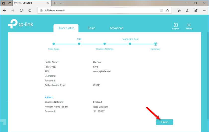 - Завершить конфигурацию параметров и проверить интернет-соединение.
