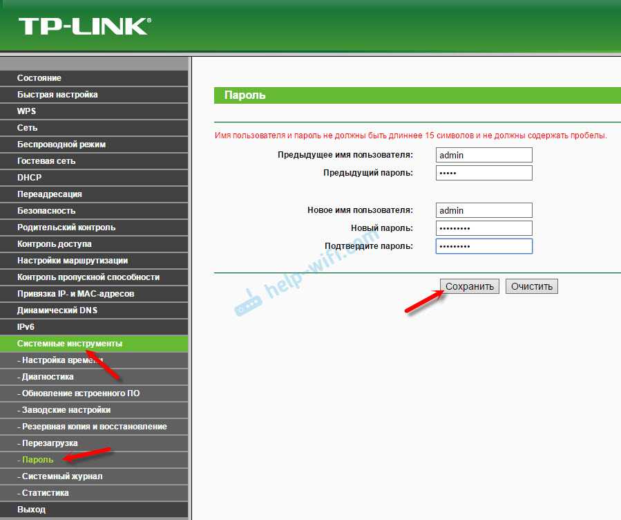 Советую еще раз зайти в настройки, и сменить заводской пароль admin, который нужно вводить при входе в настройки роутера. Сделать это можно в разделе «Системные инструменты» – «Пароль». Нужно указать старые admin и admin. Затем задать новое имя пользователя и новый пароль два раза.
