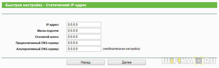 Здесь нужно будет ввести сразу несколько пунктов — выданный вам индивидуальный ip адрес, маску подсети и шлюз — все это выдает провайдер.
