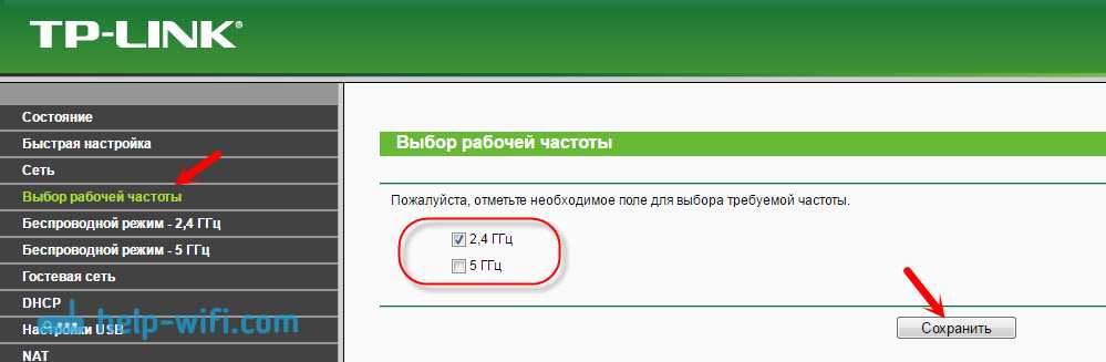 В панели управления перейдите на вкладку «Выбор рабочей частоты». Там можно указать, на какой частоте роутер будет транслировать беспроводную сеть.