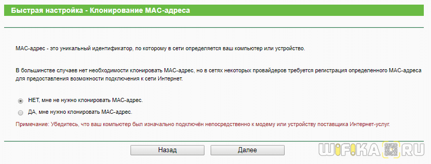 Если вы выберите «Динамический IP-адрес», то нужно будет только указать, есть ли привязка по MAC-адресу, или нет. Если есть, то клонируем MAC-адрес с компьютера. Если нет, то интернет сразу заработает.