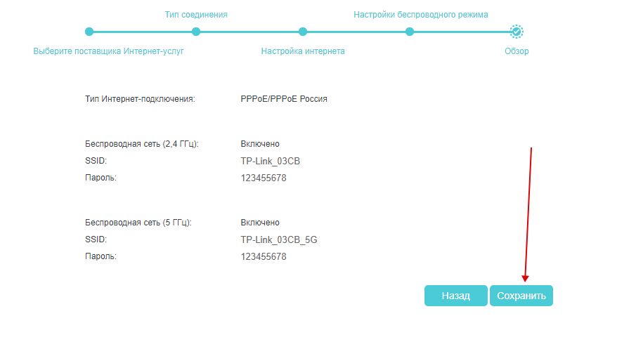 В следующем шаге можно настроить вай-фай. SSID — имя сети, отображаемое в списке доступных сетей.