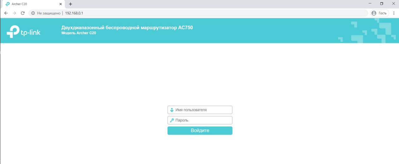 Сперва необходимо зайти в настройки маршрутизатора TP-Link Archer C20 :