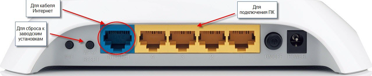 Очень часто начинающие пользователи путают, в какой разъем вставляется кабель от провайдера, а в какой — патчкорд, связывающий маршрутизатор с компьютером. Так вот запомните — Интернет-кабель всегда идет только в разъем «WAN» — на большинстве моделей он отмечен особенным цветом, либо надписью Ethernet.