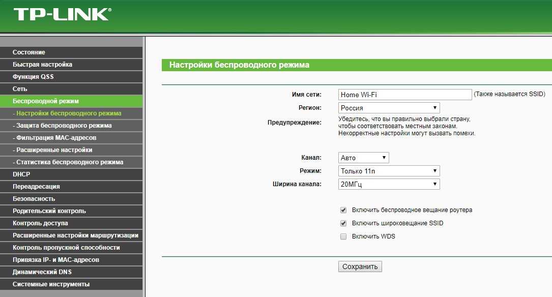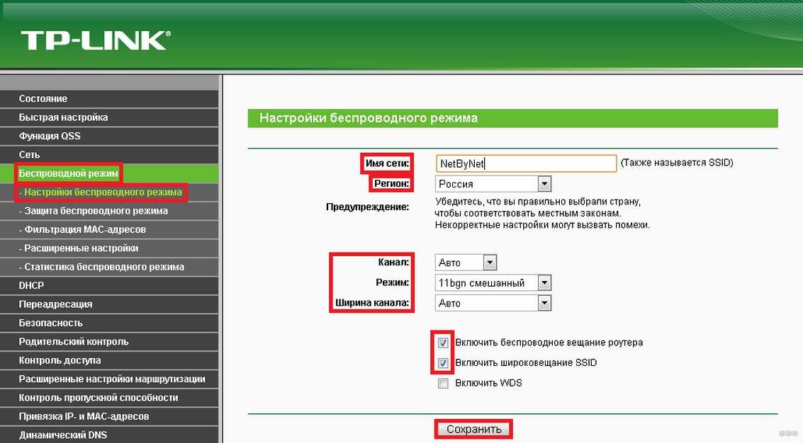 Если на роутере нет кнопки активации модуля, нужно будет зайти в «админку». Я писал об этом выше. В веб-интерфейсе перейдите в раздел настроек беспроводной сети. В разных моделях он называется по-разному: режим беспроводной сети, беспроводная сеть, точка доступа, Wireless, настройки Wi-Fi, WLAN. Там нужно включить беспроводную передачу. Опять же, элемент может называться по-разному.