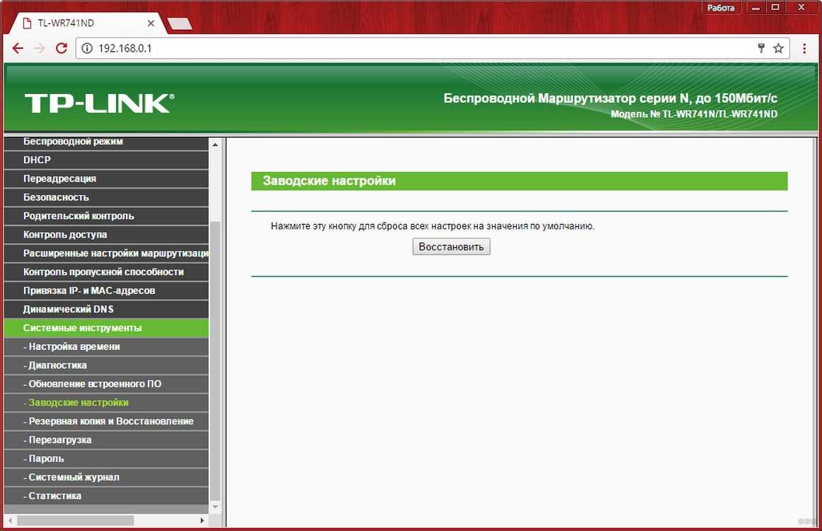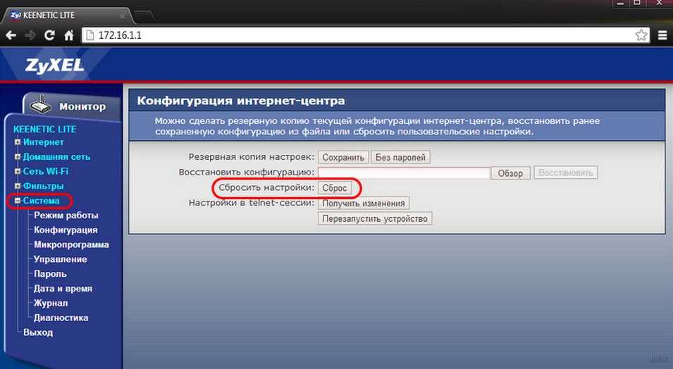 На некоторых моделях сброс можно сделать через веб-интерфейс. В TP-Link — в разделе «Системные инструменты», Zyxel и D-Link — «Система», ASUS — «Администрирование».