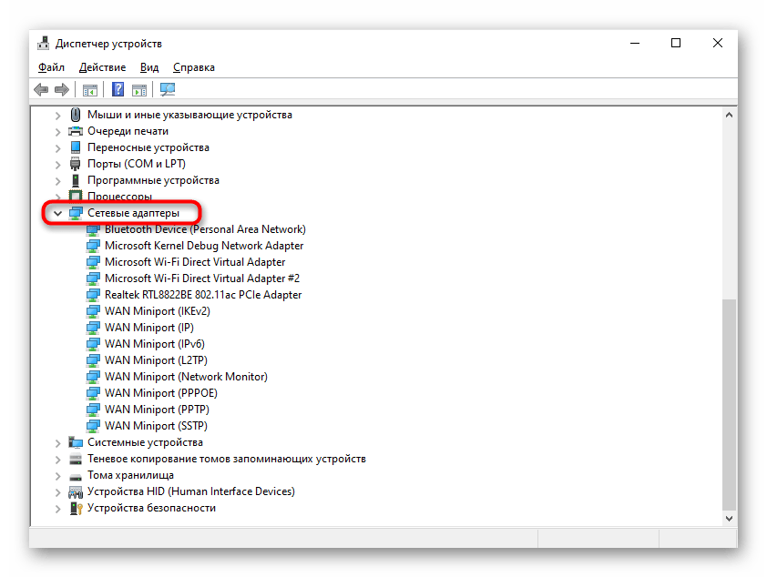 В диспетчере устройств находим сетевые адаптеры и среди них будет Виртуальный адаптер сети. Его нужно включить. Теперь повторно создаем сеть, как это уже было описано выше.