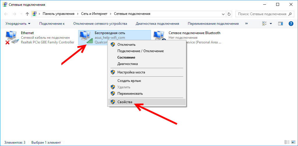 1Выбираем свой WiFi модуль, и активируем контекстное меню соединения нажатием правой клавиши мышки.