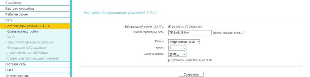 - Выставляем ширину канала в маршрутизаторе. В разделе «Беспроводной режим» задаем ширину «20 MHz».