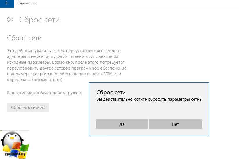 Подтверждаем наше действие, кнопкой да и начинаем сброс сетевых настроек windows 10 redstone.