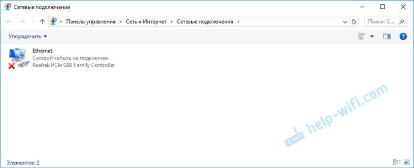 Если сетевой кабель не подключен, то иконка на панели уведомлений будет такой: