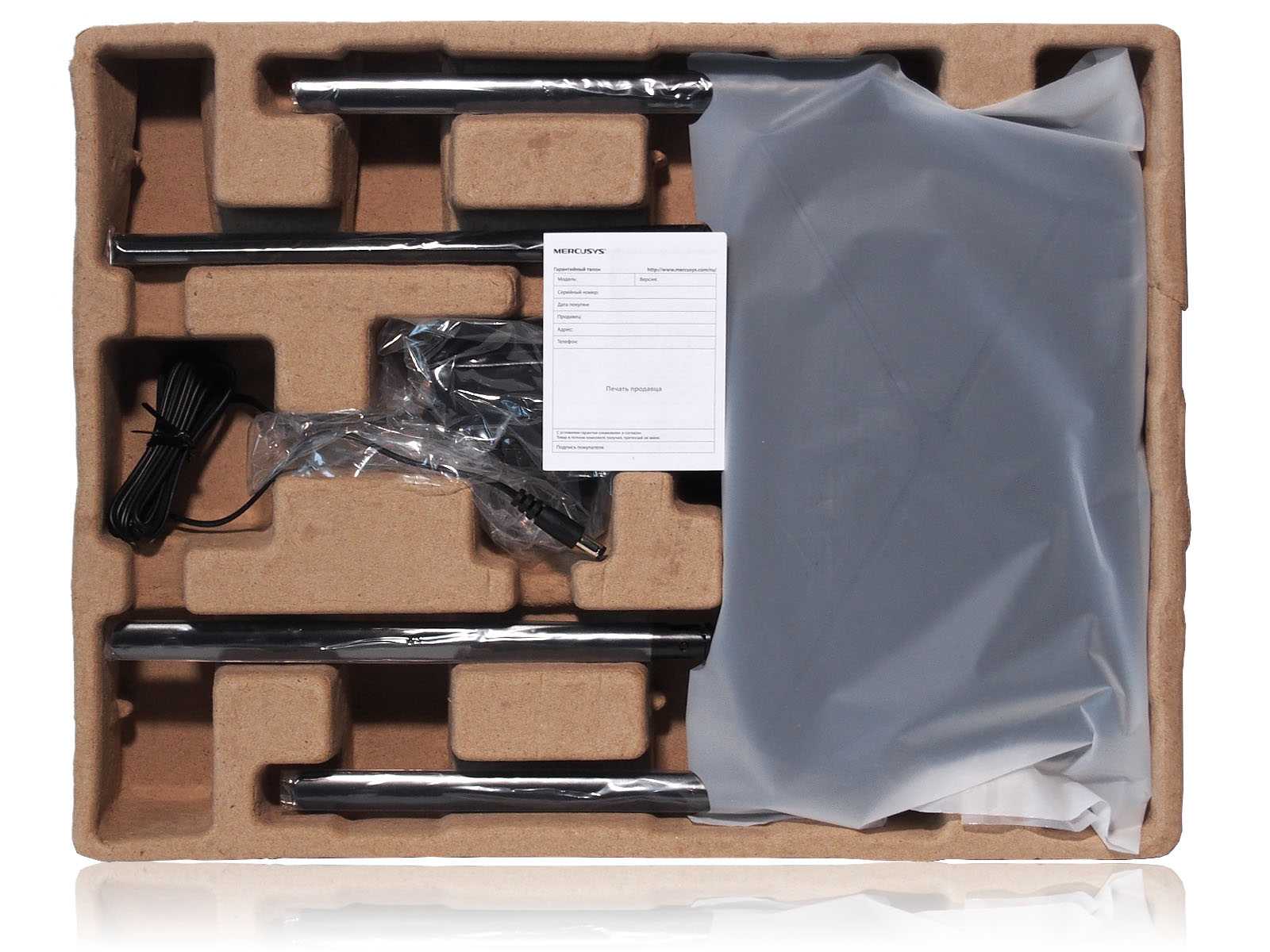 Mercury MR70X поставляется в большой комплектации. Он выполнен в стиле Mercury (красный и черный цвета). Пакет содержит всю необходимую информацию о маршрутизаторе.
