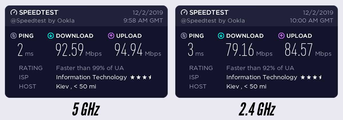 - Двухдиапазонный — работает на двух частотах: 2,4 ГГц и 5 ГГц. В результате устройства, поддерживающие новый стандарт подключаются к нему по 5 ГГц, а старые используют стандарт 2.4 ГГц.