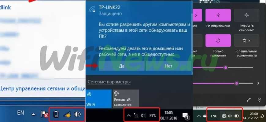 Этот вариант актуален для устройства с Windows 10 и Windows 11 . Надо щёлкнуть по уведомлениям, а после выбрать раздел, посвящённый Сети.