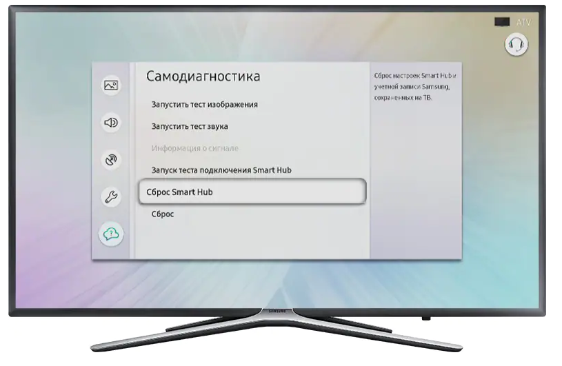 Войдите в настройки, откройте раздел «Поддержка» — «Самодиагоностика» и нажмите на «Сброс Smart Hub».