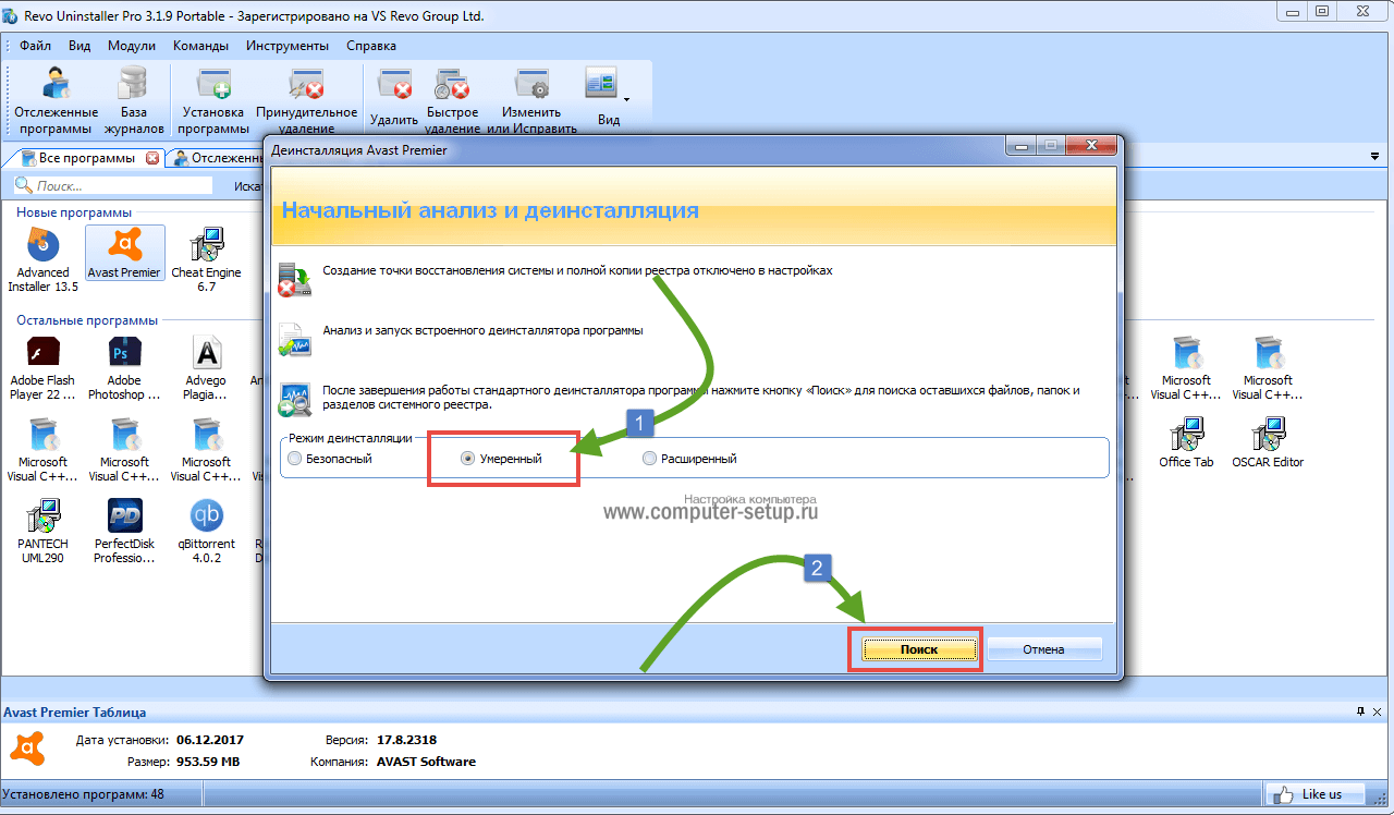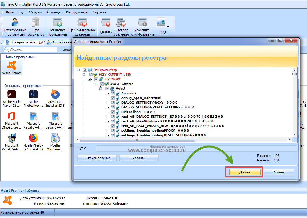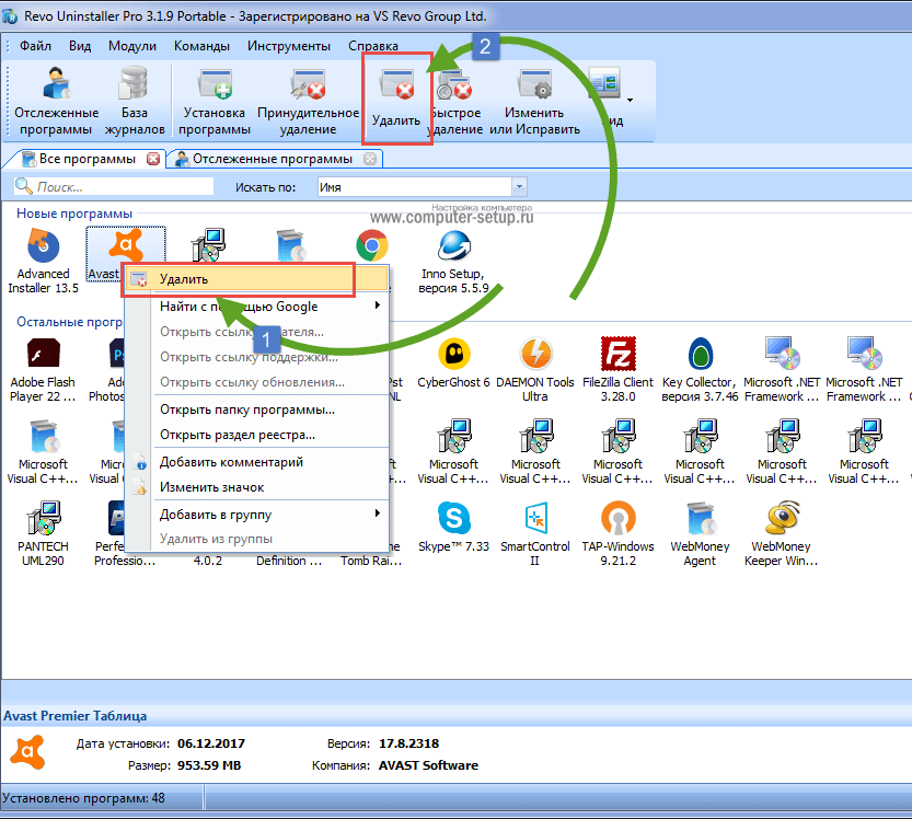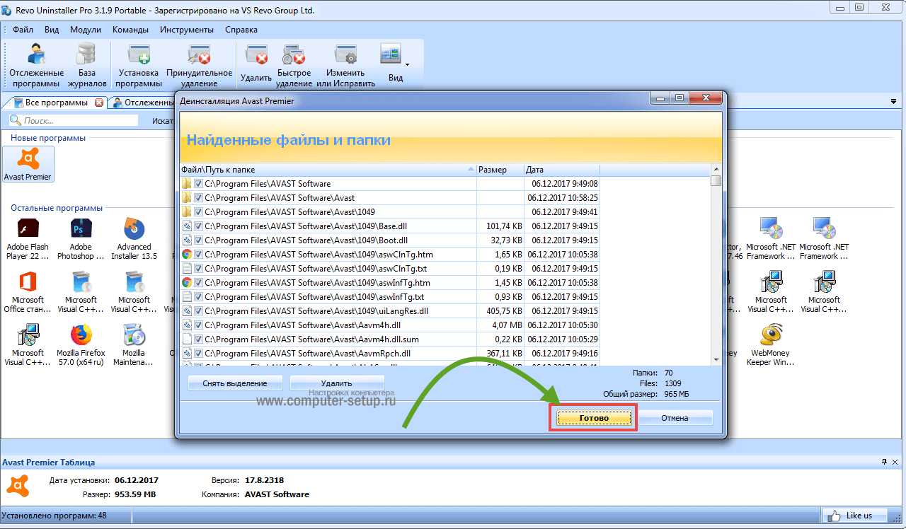 Рис. 15 – Деинсталляция Аваст через Revo Uninstaller