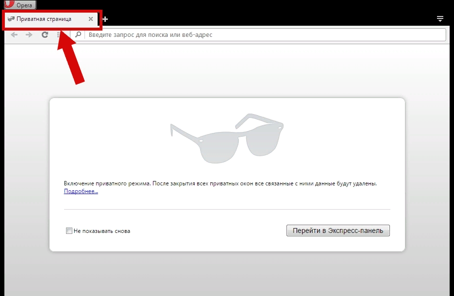 - Появится новая страница, на вкладке которой будет написано «Приватная страница».
