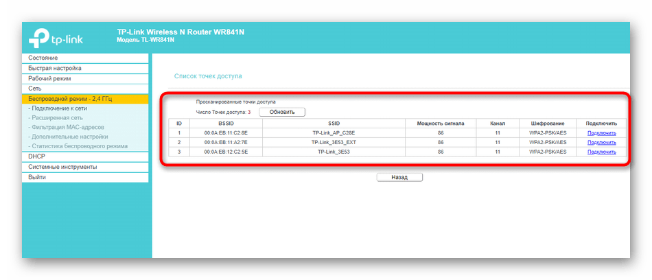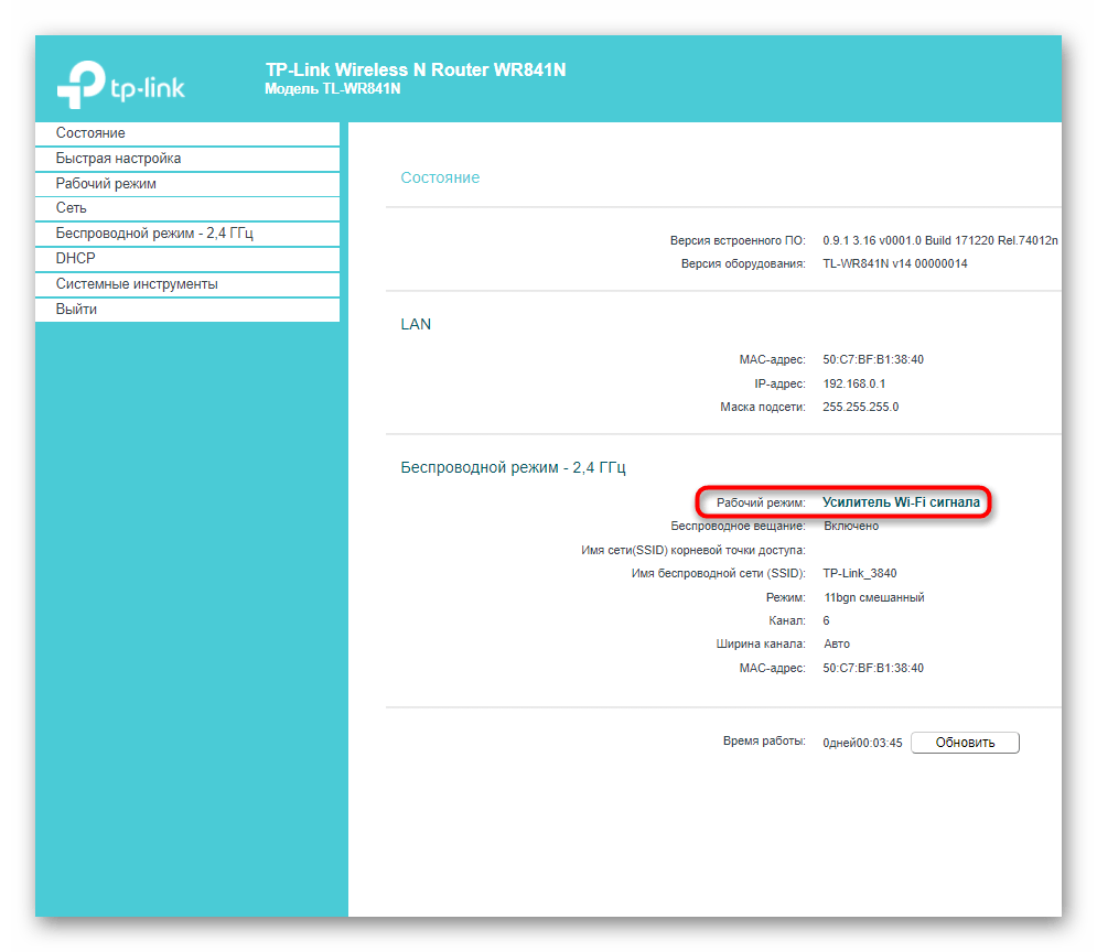 В примечании выше мы уже уточнили о добавлении новых режимов работы в последние версии прошивок маршрутизаторов от TP-Link. Это значительно упростило общий принцип выполнения поставленной задачи, ведь в большинстве случаев пользователю нужно только перевести устройство в соответствующий режим и выбрать существующую сеть для подключения. Дополнительные настройки, о которых мы расскажем в завершающем разделе материала, настраиваются по желанию или во время использования нестандартных сетевых параметров.