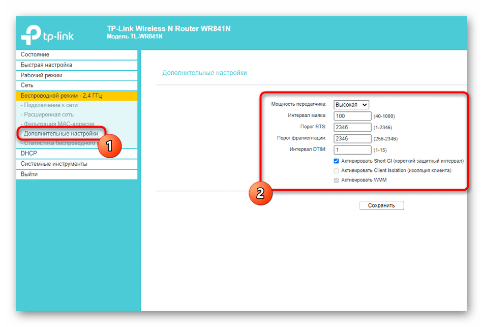 В категории «Дополнительные настройки» обычных пользователей интересует только мощность передатчика, которая по умолчанию установлена в максимальном значении. Если вы хотите сузить зону покрытия или же желаете уменьшить энергопотребление, измените параметр на более низкий.