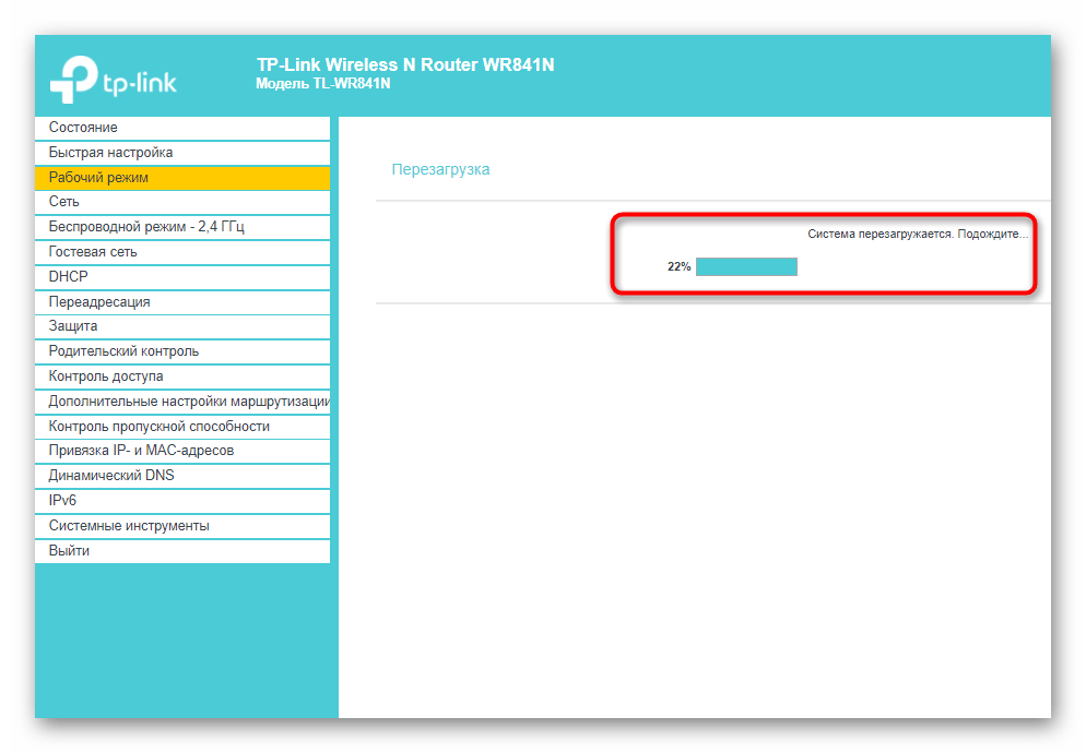 - Ожидайте завершения перезагрузки маршрутизатора и появления главного меню веб-интерфейса.