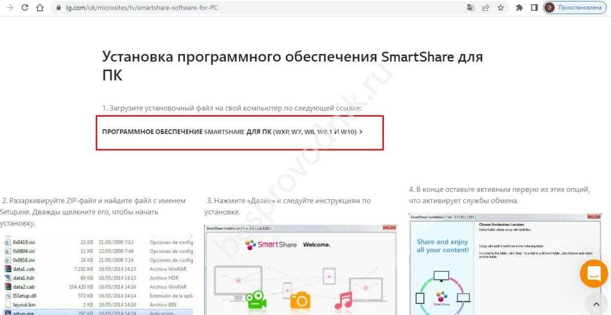 Прежде чем приступить к установке продукта, необходимо распаковать скачанный архив «LG_SmartShare_WAL_x.x.x» (где x.x.x – версия продукта). Следует открыть папку и найти «setup.exe».
