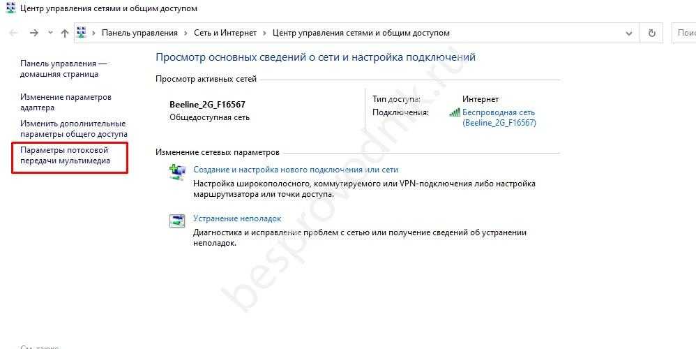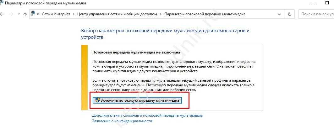 Кликните по строке «Параметры потоковой передачи мультимедиа»;