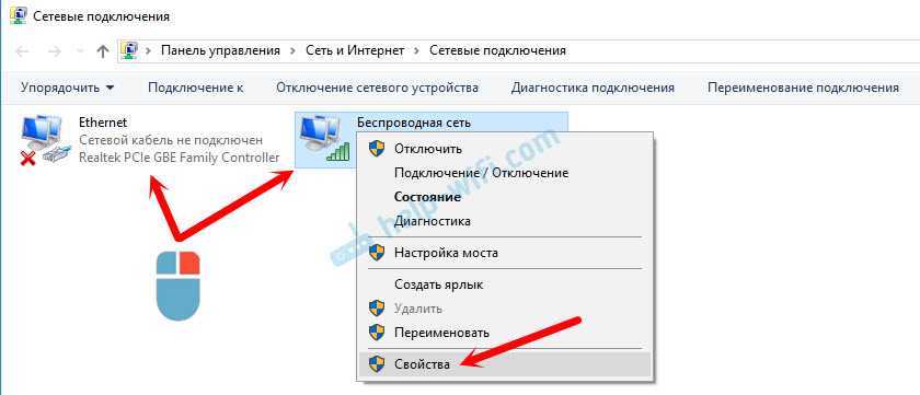 - Нажать ПКМ по проблемному Интернет-соединению и выбрать «Свойства».