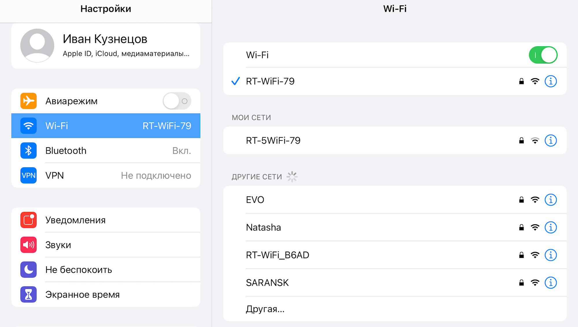 Вполне вероятно, что произошла ошибка при работе через конкретную сеть Wi-Fi. Тогда попробуйте удалить её из списка подключений на устройстве. В меню iPad перейдите в “Настройки — Wi-Fi”. Кликните по названию вашей сети и выберите «Забыть эту сеть». Система удалит из памяти все данные об этом подключении.