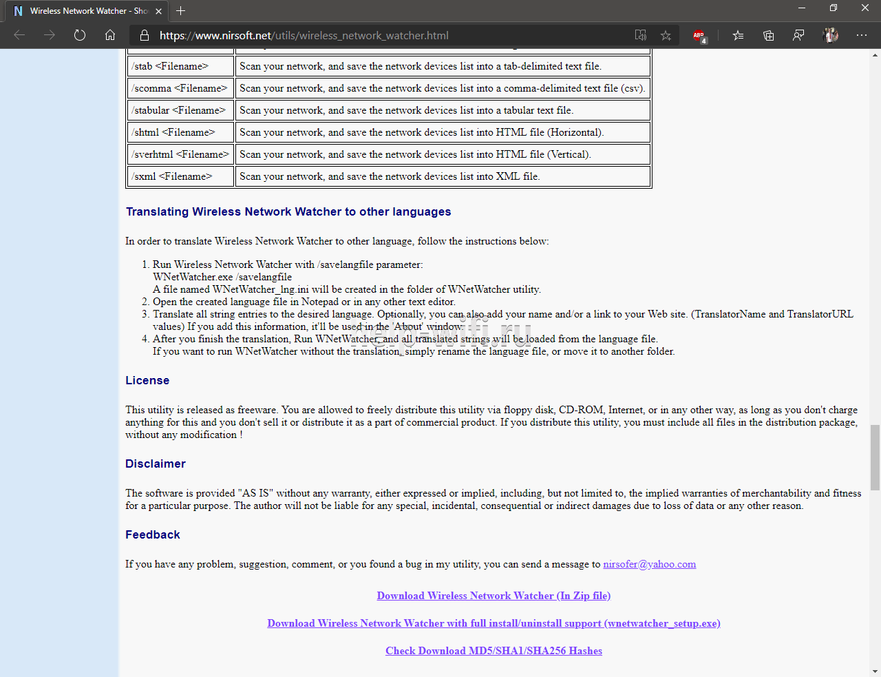 Перед началом использования Wireless Network Watcher, программу необходимо скачать. Официальный установочный пакет находится на сайте производителя по адресу: https://www.nirsoft.net/utils/wireless_network_watcher.html. Страничка полностью на английском языке, но пользователи могут воспользоваться автоматическим переводом браузера (такая функция есть, например, в Google Chrome) или просто найти необходимую ссылку.