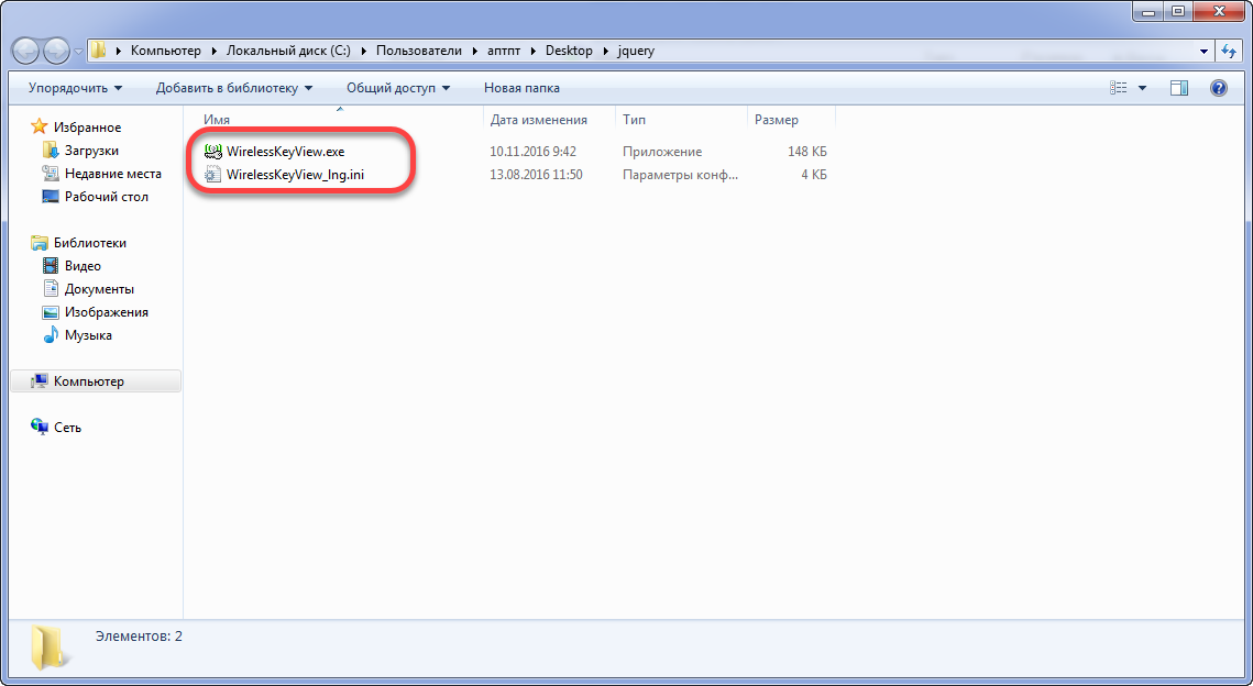 4Распаковываем исполняемый и языковый файлы в один каталог. Последствием операции станет обнаружение программой файла WirelessKeyView_lng.ini, в результате чего её интерфейс будет русскоязычным.
