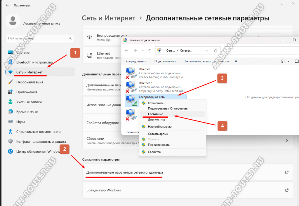 Во всех настольных версиях операционных систем Microsoft за последние 10 лет – от старой доброй Windows 7 до последней Windows 11 – есть возможность узнать пароль от подключенной сейчас или ранее сети Wi-Fi без посторонних программ и плясок с бубном. Для этого открыть параметры системы и зайти в раздел «Сеть и Интернет» и открыть «Дополнительные параметры сетевого адаптера» :