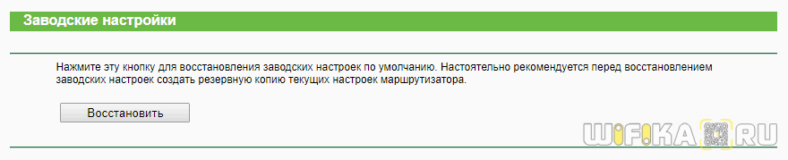 Здесь достаточно просто нажать на кнопку «Восстановить» и роутер обнулится до состояния «из коробки»