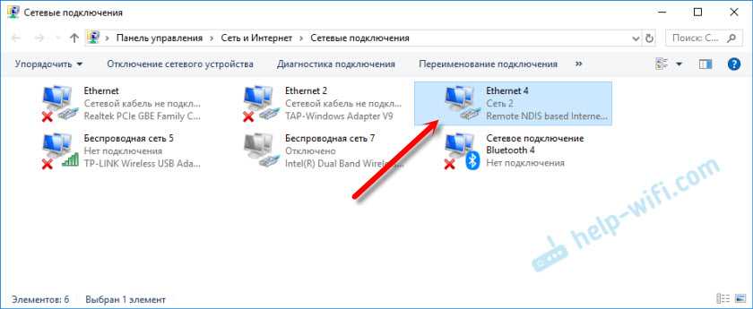 После этого при необходимости установятся драйверы на смартфон и интернет заработает. Подтверждением тому будет новое подключение, которое можно увидеть в «Центре управления сетями и общим доступом — Изменение параметров адаптера»