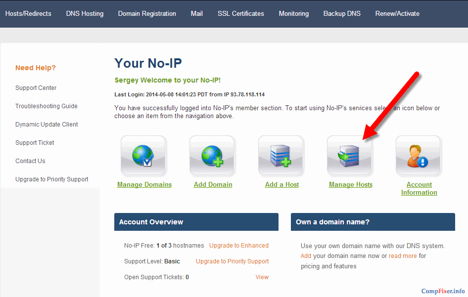 Привязка динамического IP-адреса к доменному имени с помощью сервиса No-IP