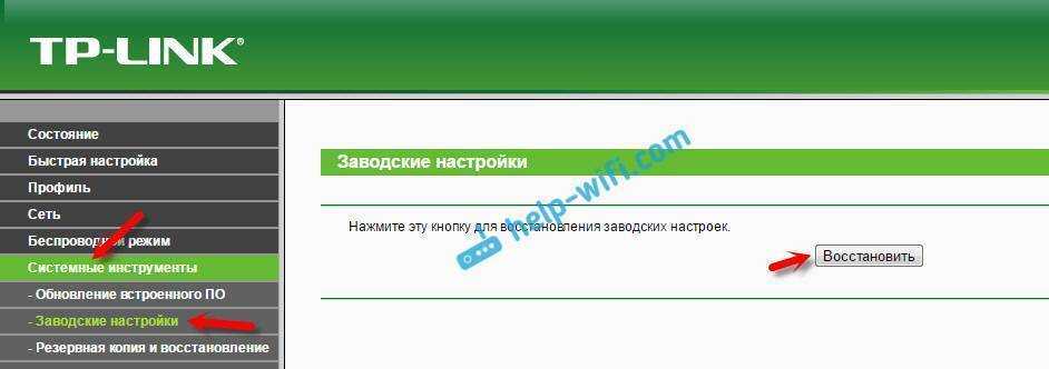 Или, зайдите в web-интерфейс, перейдите на вкладку “Системные инструменты” – “Заводские настройки”, и нажмите на кнопку “Восстановить”.