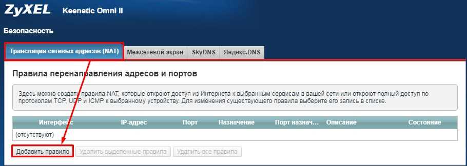 - Нажимаем на первую вкладку и далее «Добавить правило».